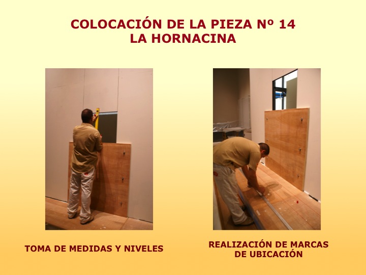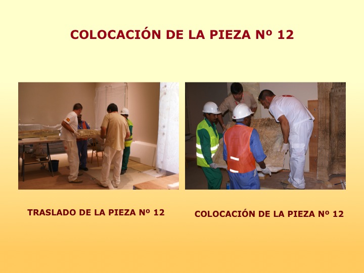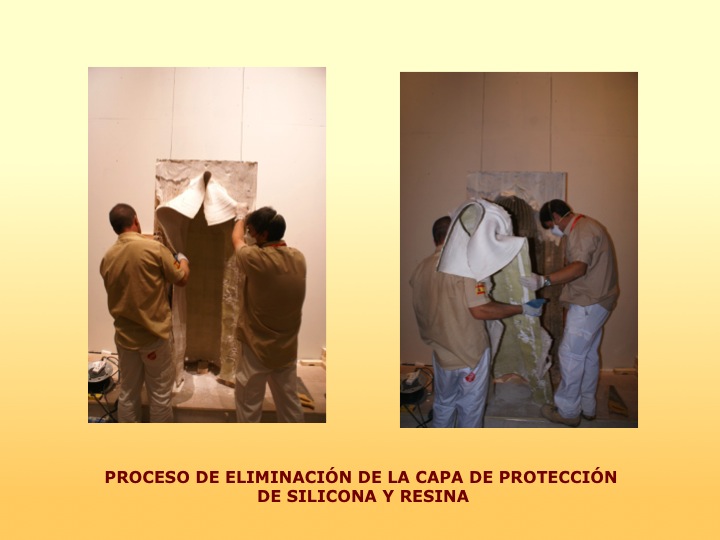 El equipo de El Barco® comienza revisando y ajustando la estructura de soporte del museo, que será el anclaje definitivo de la obra. A continuación, se procede al desembalaje: apertura de cajas, retirada sistemática de espumas de polietileno, papeles, gasas, capas de resina y de silicona hasta liberar cada fragmento. Pieza a pieza, reverso y anverso quedan expuestos sobre la mesa de trabajo, se leen las marcas incisas de diseño y escritura y se prepara el montaje.