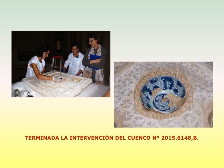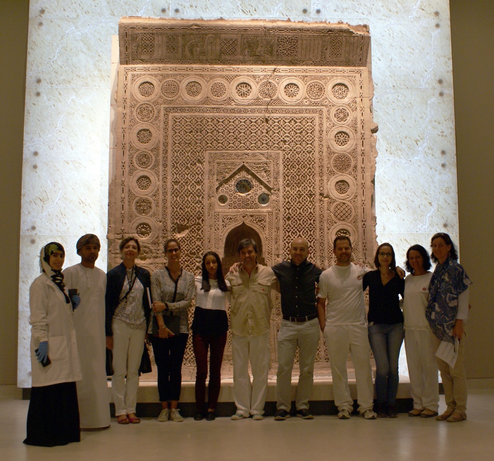 La última fase se centra en la reintegración volumétrica y cromática de cortes, pérdidas y grietas, formulando masas de yeso y pigmentos texturadas a cepillo para mimetizar el original. En paralelo, se limpian, consolidan, pegan y reubican los cuencos de porcelana china en sus huecos, devolviendo sentido al diálogo entre yesería islámica y cerámica asiática. El resultado es un mihrab estructuralmente sólido, legible y monumental, instalado como un verdadero icono del patrimonio de Omán.